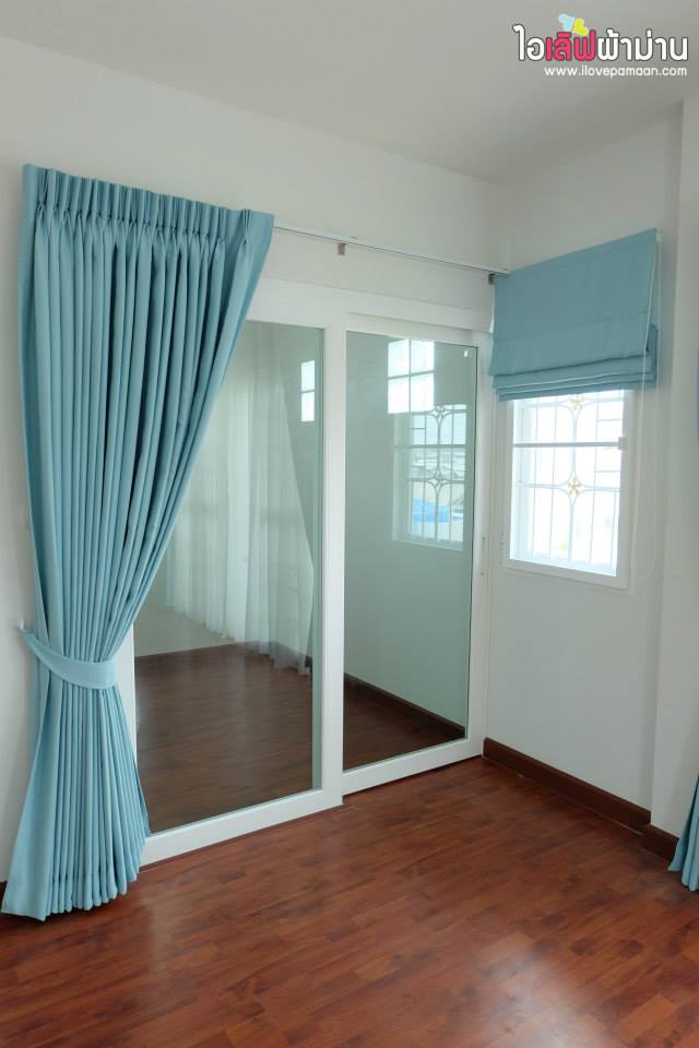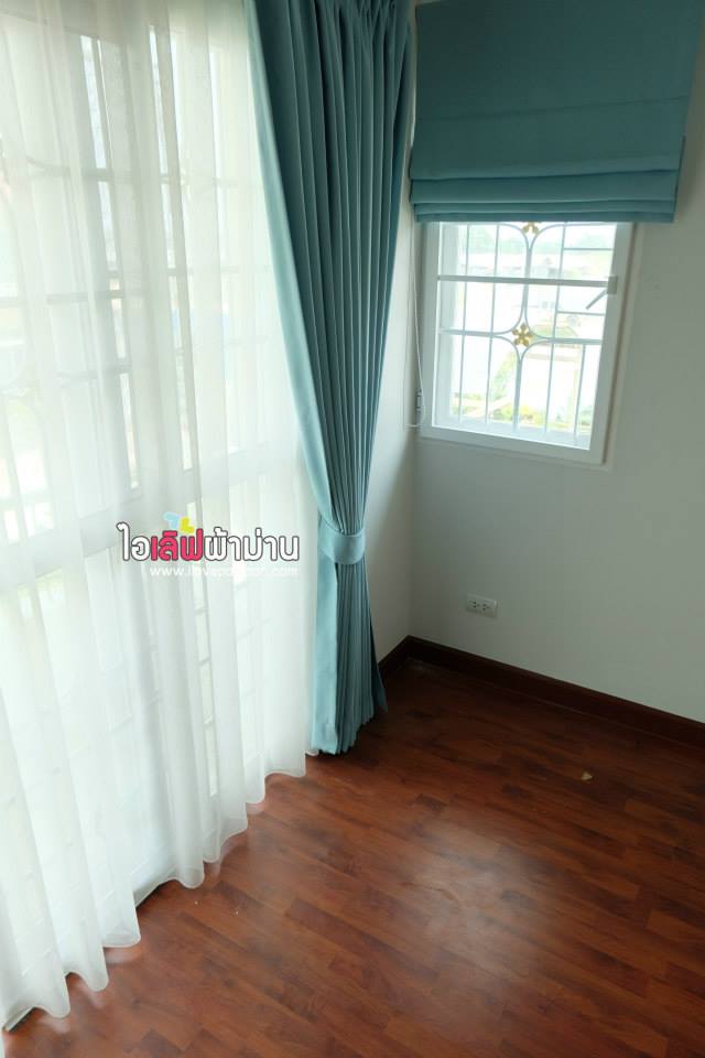 สดใส สบายตา กับผ้าม่านสีฟ้า pastel ทั้งหลัง ที่โครงการ ศุภาลัย การ์เด้นวิลล์ หลังนี้จ้า